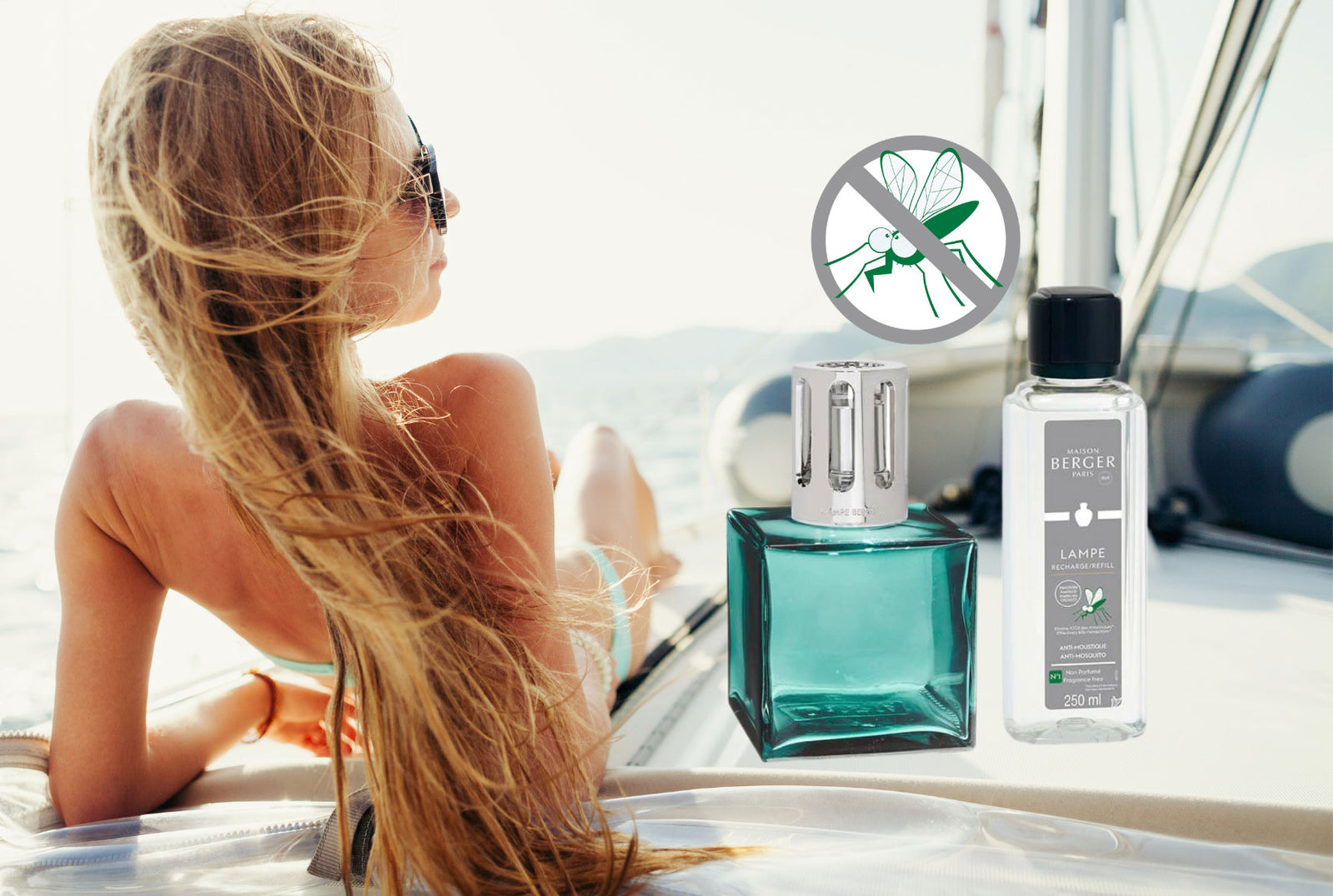Verwenden Sie unsere Lampe Berger mit der speziellen Anti Mückenflüssigkeit für 30 Minuten im Innenraum Ihres Bootes und sie tötet 100% aller Mücken unter Deck und hält den Salon und die Kabinen für 8 Stunden mückenfrei.